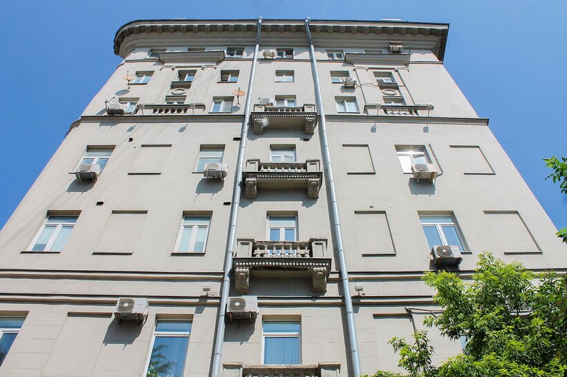 Начались работы по капитальному ремонту и в жилом доме с модульонами в центре столицы. Он расположен по адресу: улица Земляной Вал, дом 42/20. Это настоящий шедевр советской неоклассики, масштабное здание с большим количеством архитектурных элементов.