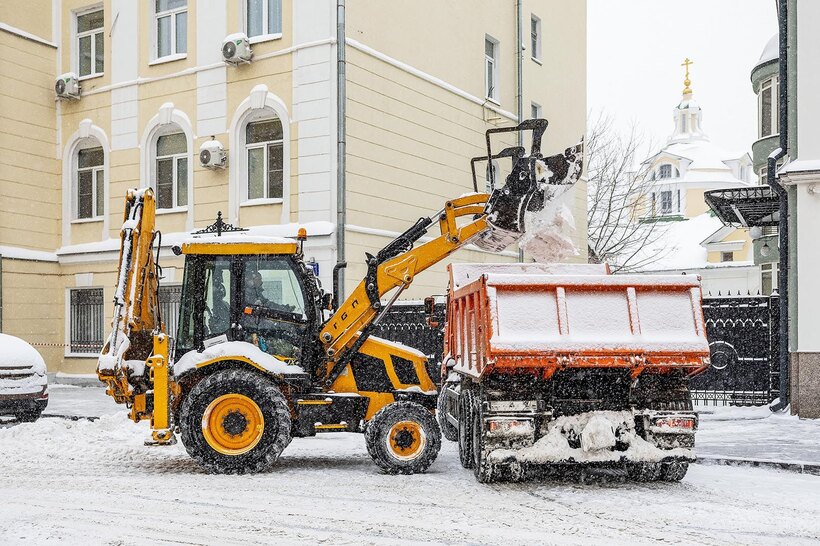 По всей столице организован вывоз с улиц снежных валов, сформированных за время сильных осадков.