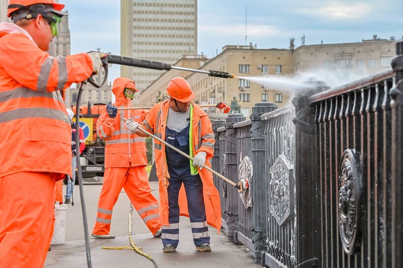 «После установления постоянных круглосуточных положительных температур воздуха приступили к промывке инженерных сооружений. В общей сложности до конца апреля приведем в порядок более двух тысяч объектов — мосты, тоннели, подземные и надземные пешеходные переходы, набережные, причалы, фонтаны и памятники», — рассказал Петр Бирюков.Работы включают очистку и промывку конструктивных элементов, бетонных, металлических и стеклянных поверхностей, перильных ограждений, лестничных сходов. При необходимости специалисты выполнят локальную окраску.